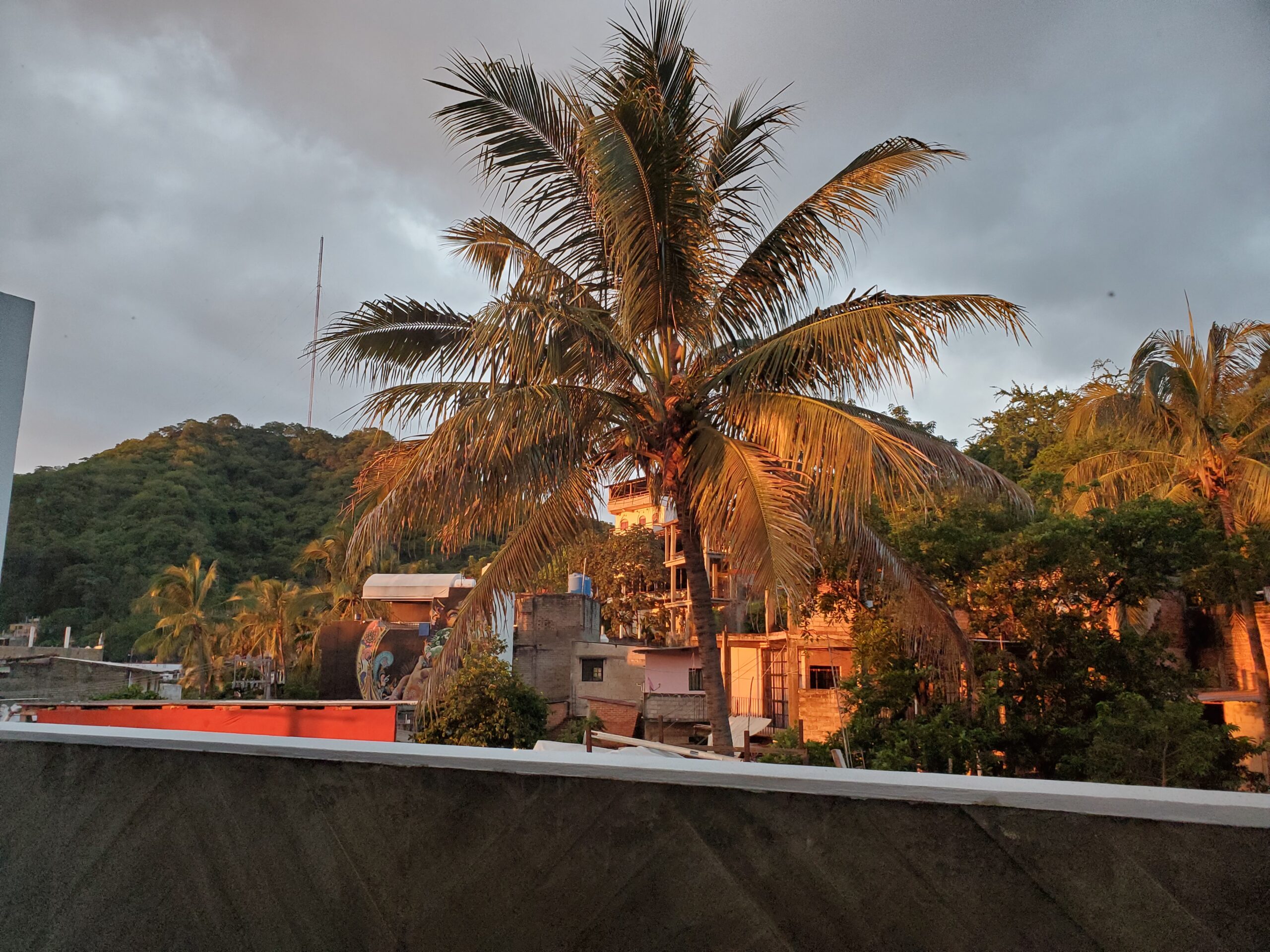 Warm green glow of Puerto Vallarta's nature outside the window and overlooking the street below